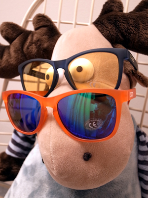 ライリー・ホーク先輩も着用している 赤フレームにブルーレンズのタンカウニー先輩のモデルと つや消しブラックフレームに透明うっすらイエローレンズの フィギー先輩のモデルです!