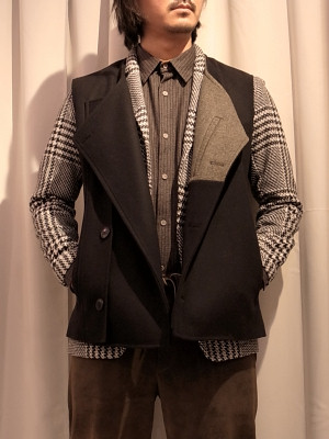 怪しいカタチのジャケットは、 羽織るだけでオシャレで暖かい便利アイテムです。 |