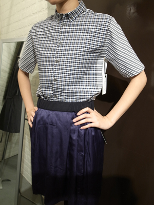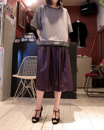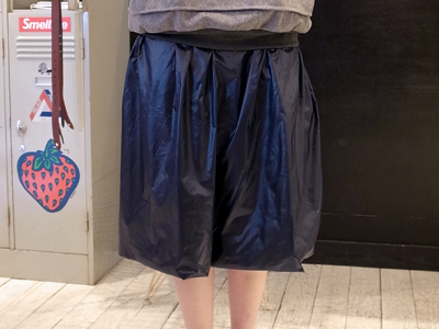 上品な光沢のスカートは袋状になっており らしさ溢れる逸品。 しかもウエストはゴムで楽チンです。 |
