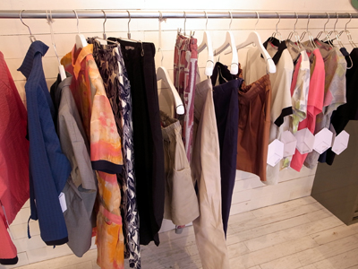 写真のコットンシルクのスカートや ジャージーのプリントトップスなど。