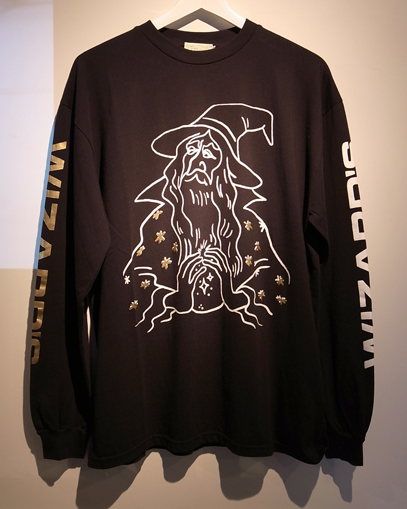 スタジオで一点一点手作業で染めたタイダイシリーズや 好評だった魔法使いプリントの白バージョンなど 今回も最高です。 |