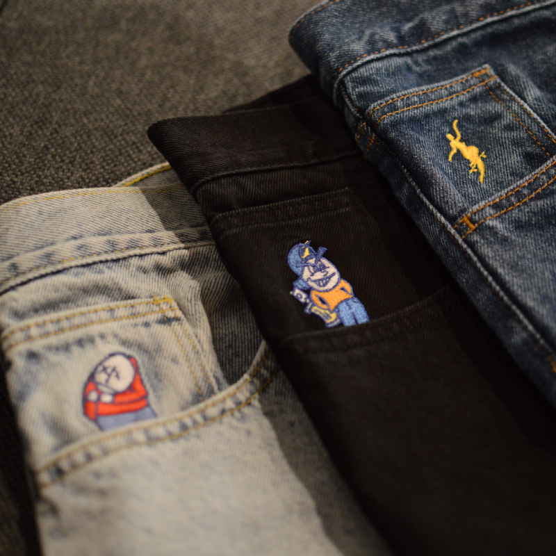 生地の段階でプリントした贅沢なロンTや 人気の90'sスケーターデニム。 |